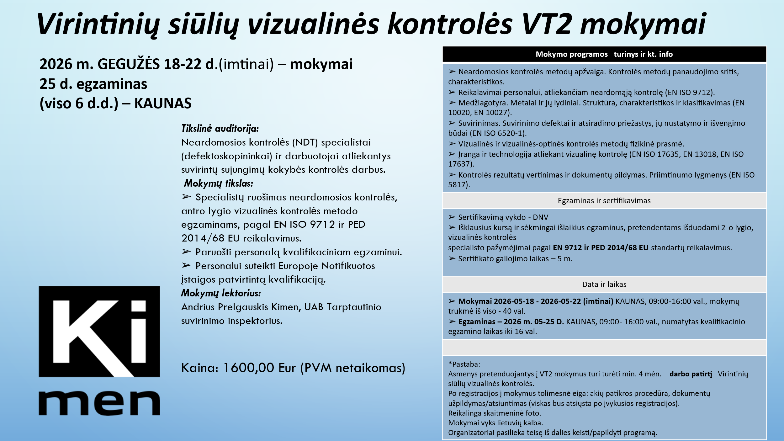 Virintinių siūlių vizualinės kontrolės VT2 mokymai