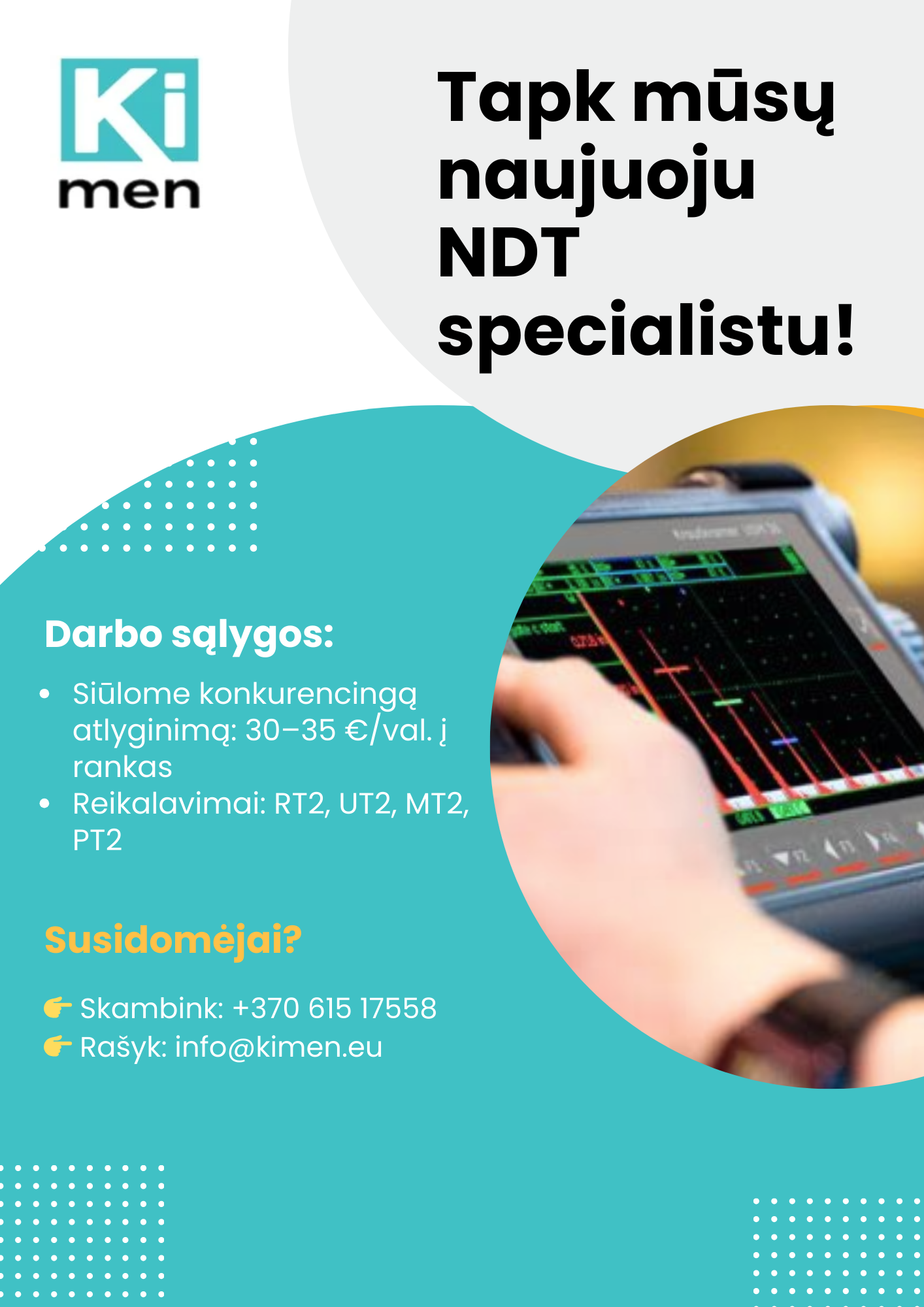 Kimen, UAB į savo profesionalią komandą ieško NDT (neardomųjų bandymų) specialistų